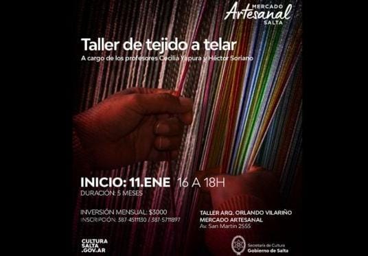 Con el objetivo de revalorizar las técnicas artesanales de la Provincia, se realizará un taller de tejido a telar a cargo de los docentes Cecilia Yapura y Héctor Soriano con el apoyo de la Secretaría de Cultura.