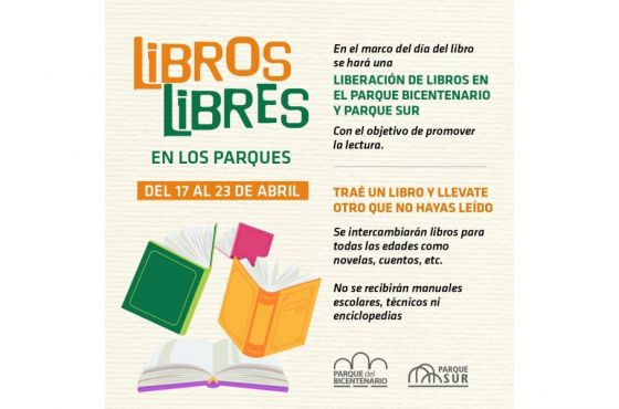En el marco del Día Mundial del Libro que se celebra el 23 de abril los parques Sur y del Bicentenario realizarán desde hoy 17 al 23 de abril una «liberación de libros» con el objetivo de promover la lectura.