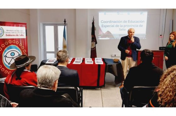 En el salón principal de la Biblioteca Provincial Victorino de la Plaza el ministro de Educación, Cultura, Ciencia y Tecnología, Matías Cánepa, presentó el primer libro escrito en Braille, emitido por la Coordinación de Educación Especial.